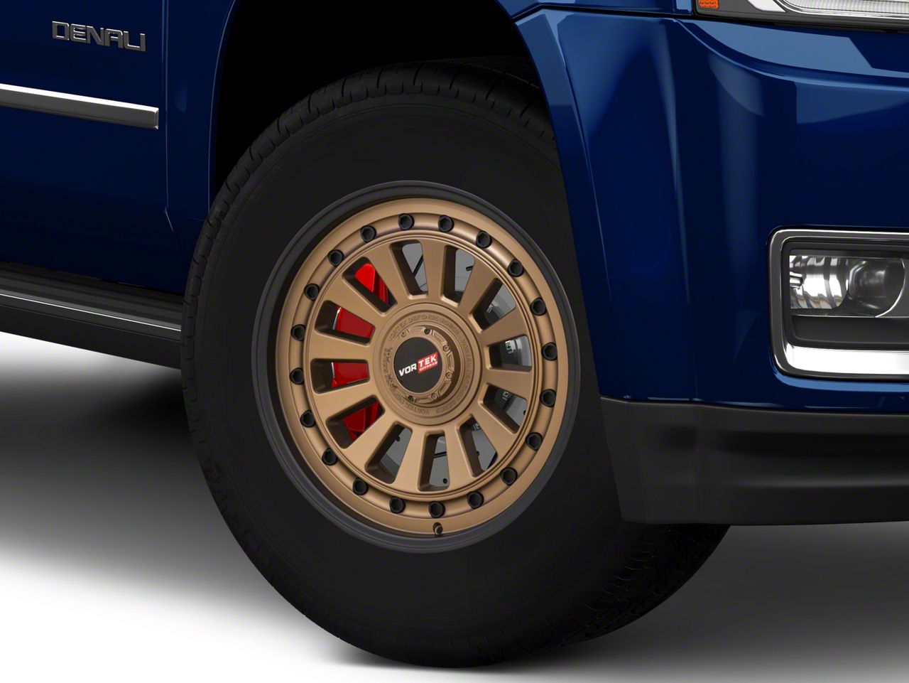 Vortek Off-Road VRD-702 Matte Bronze with Black Bolts and Lip 6-Lug Wheel; 18x9; -12mm Offset - Enhance your vehicle's style with the Vortek Off-Road wheel. This wheel's distinctive design and finish complement your vehicle's aesthetics, making a bold statement. It's crafted to accentuate the unique character of your car, emphasizing a premium and robust appeal.