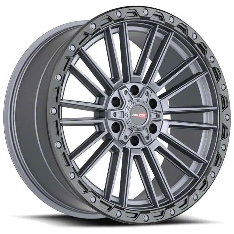 Vortek Off-Road VRT-604 Matte Titanium with Black Bead Ring 6-Lug Wheel; 22x10; -18mm Offset: Redefine your vehicle's style with the Vortek Off-Road VRT-604 Matte Titanium with Black Bead Ring 6-Lug Wheel. This wheel's elegant design and striking finish embody a blend of sophistication and boldness, perfectly complementing a wide array of vehicle aesthetics. Crafted from high-quality materials, it's a testament to durability and style.