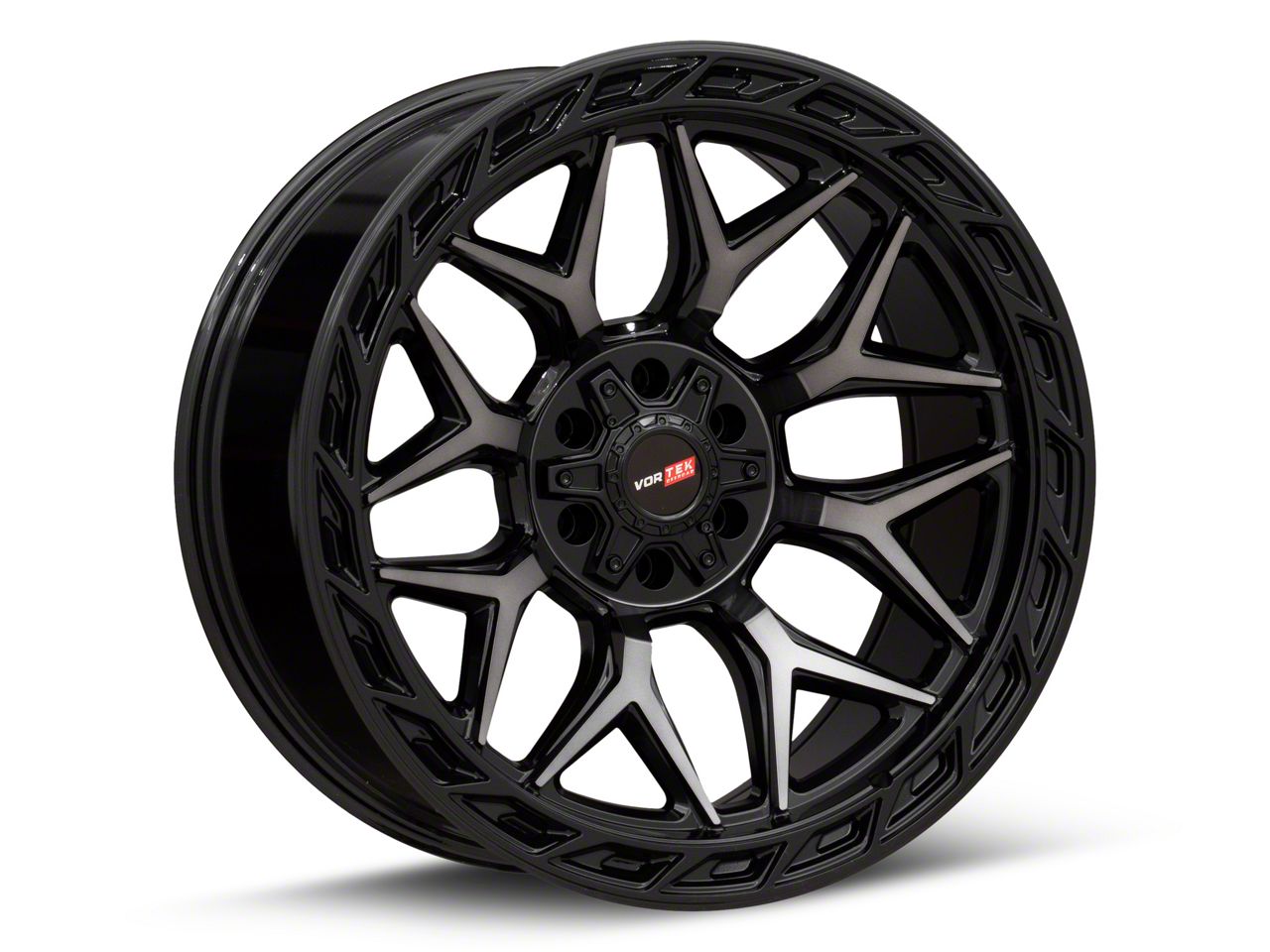 Vortek Off-Road VRP-504 Black Diamond Cut with Dark Tint 6-Lug Wheel; 20x10; -18mm Offset. Enhance your vehicle's look with the Vortek Off-Road VRP-504 Black Diamond Cut with Dark Tint 6-Lug Wheel. This premium wheel adds a touch of elegance and class to your vehicle, complementing its sophisticated aesthetic.