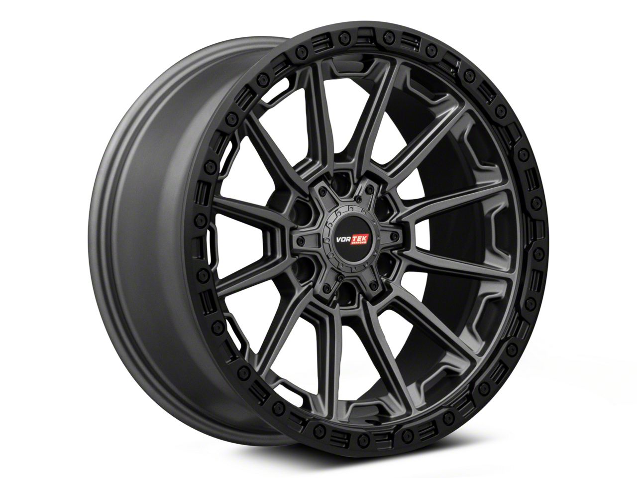 Vortek Off-Road VRT-601 Matte Titanium with Black Bead Ring 6-Lug Wheel; 17x9; 0mm Offset - This wheel's elegant design will certainly enhance your vehicle's aesthetic, complementing its luxury and performance. The unique styling of this wheel makes it an ideal choice for a standout quality of your ride, reflecting the premium quality associated with the Vortek Off-Road brand.