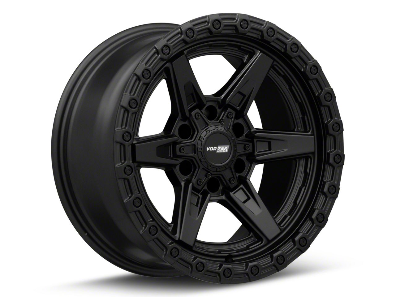 Vortek Off-Road VRT-602 Satin Black 6-Lug Wheel; 17x9; 0mm Offset - Enhance your vehicle's style with the Vortek Off-Road wheel. This wheel's distinctive design and finish complement your vehicle's aesthetics, making a bold statement. It's crafted to accentuate the unique character of your car, emphasizing a premium and robust appeal.