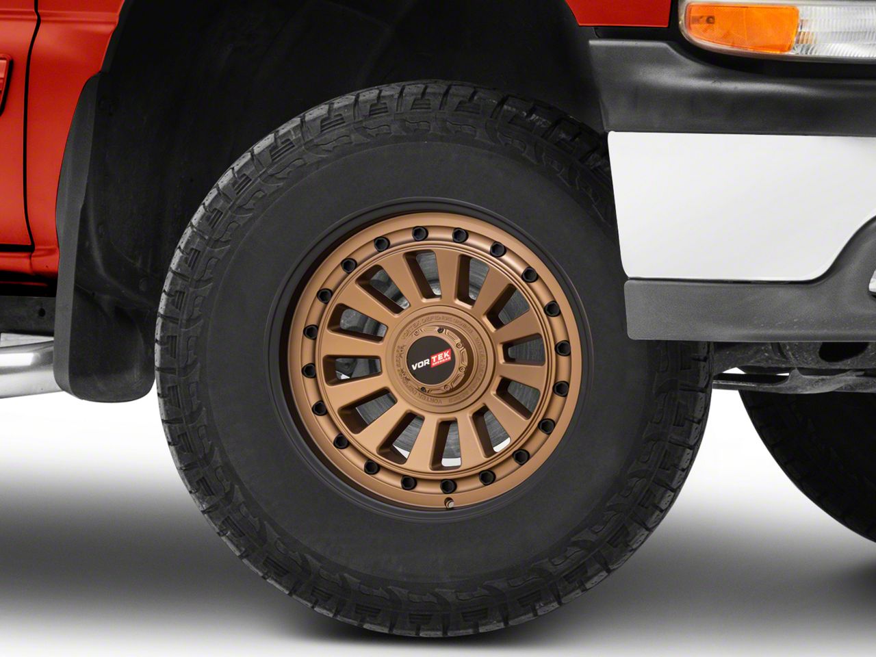 Vortek Off-Road VRD-702 Matte Bronze with Black Bolts and Lip 6-Lug Wheel; 17x9; 12mm Offset. Enhance your vehicle's look with the Vortek Off-Road VRD-702 Matte Bronze with Black Bolts and Lip 6-Lug Wheel. This premium wheel adds a touch of elegance and class to your vehicle, complementing its sophisticated aesthetic.