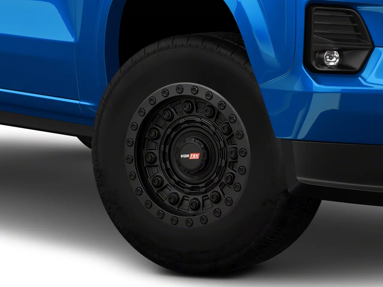 Application. This Vortek Off-Road VRD-701 Matte Black 6-Lug Wheel; 17x9, with a backspace of nan and a bolt pattern of 6 x 139.7mm (6 x 5.5-Inch), is designed to enhance alignment and driving stability. It's specially designed to fit the 2023-2026 Colorado models, sold individually.