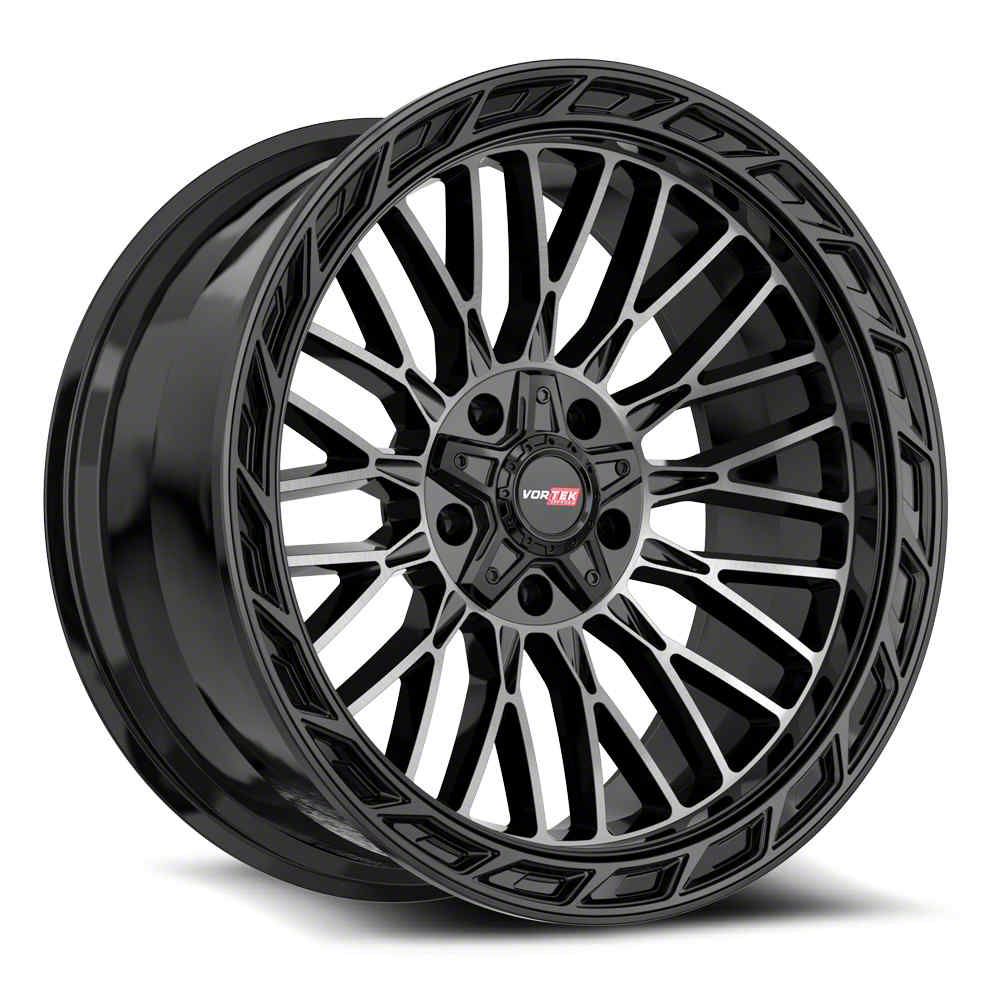 This 20x9 Vortek Off-Road VRP-502 Black Diamond Cut with Dark Tint 5-Lug Wheel; 20x9; 0mm Offset is completed in a high-quality black diamond cut finish with dark tint to make your wheel the envy of everyone. For added looks and durability, the wheels has a durable clear coat that withstand the rigors of daily driving.