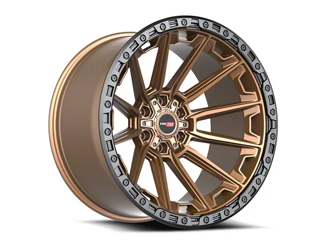 Vortek Off-Road VRT-601 Matte Bronze with Black Bead Ring 6-Lug Wheel; 20x9; 18mm Offset is a visually striking choice, offering a combination of rugged durability and modern styling. Its design complements off-road and sporty vehicles alike, enhancing the overall aesthetic appeal.