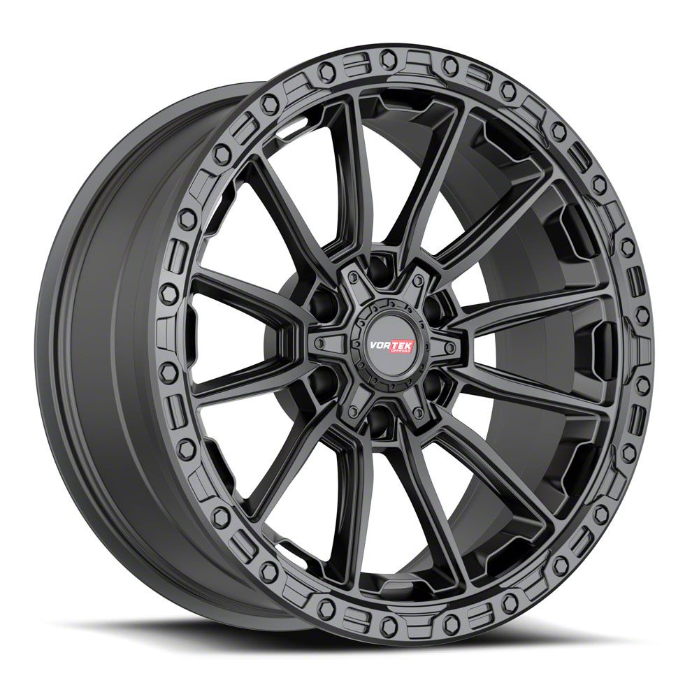 The 20x9 Vortek Off-Road VRT-601 Matte Black 6-Lug Wheel is completed in a high-quality matte black finish, which looks great. Thanks to a durable clear coat, the finish also protects against the rigors of driving.