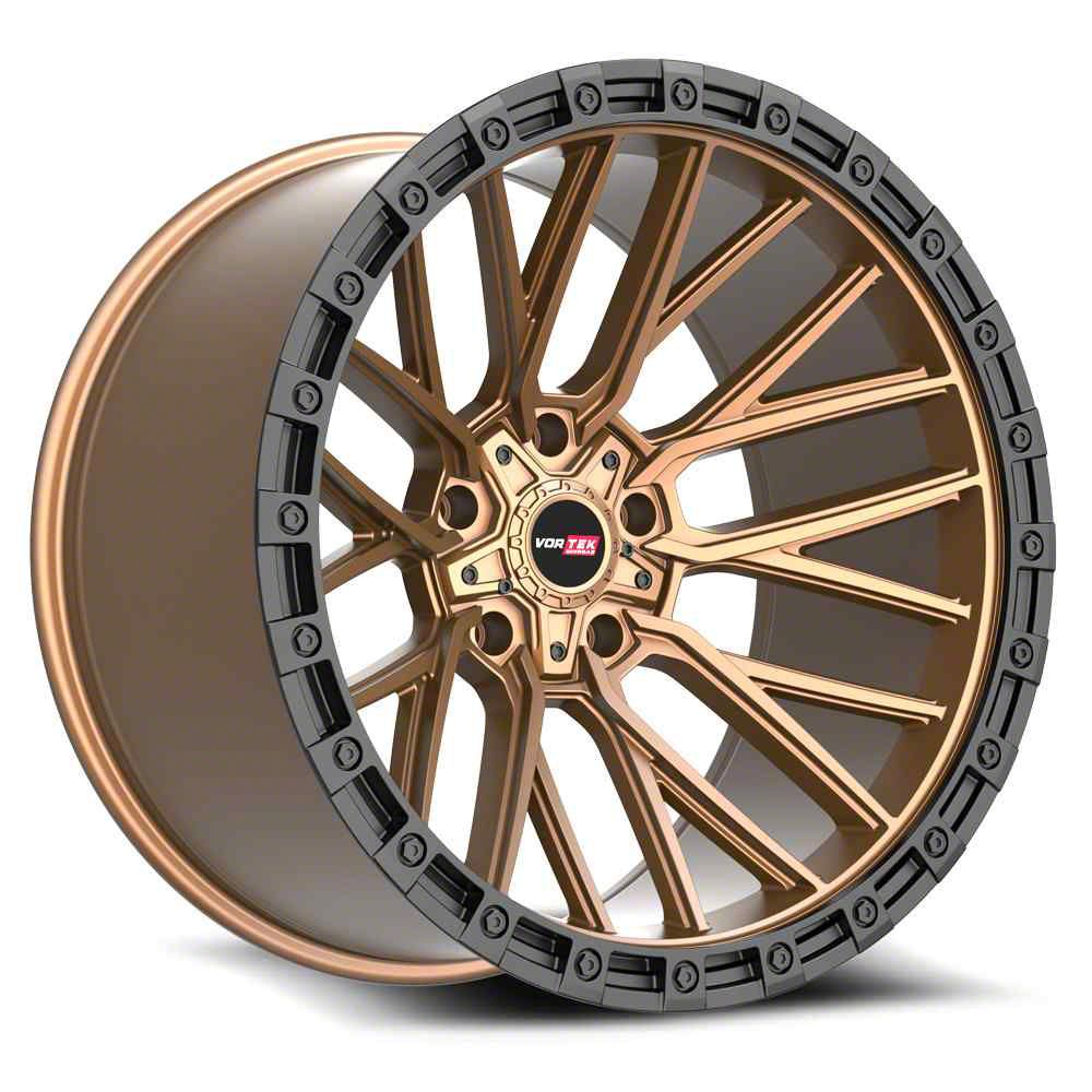 This 22x12 Vortek Off-Road VRT-608 Matte Bronze with Black Bead Ring 5-Lug Wheel; 22x12; -44mm Offset is completed in a high-quality matte bronze finish with black accents to make your wheel the envy of everyone. For added looks and durability, the wheels has a durable clear coat that withstand the rigors of daily driving.
