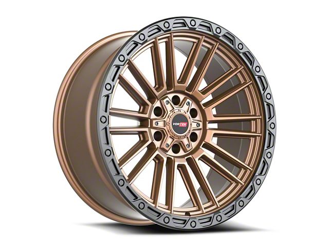 This 20x9.5 Vortek Off-Road VRT-604 Matte Bronze with Black Bead Ring 6-Lug Wheel; 20x9.5; -18mm Offset is completed in a high-quality matte bronze finish with black accents to make your wheel the envy of everyone. For added looks and durability, the wheels has a durable clear coat that withstand the rigors of daily driving.