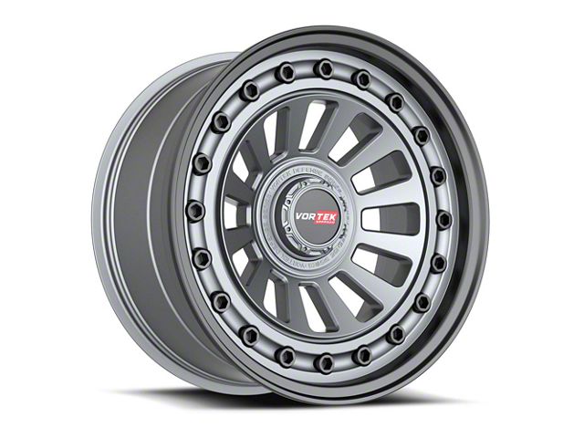 This 17x9 Vortek Off-Road VRD-702 Matte GunMetal with Black Bolts and Lip 6-Lug Wheel; 17x9; -12mm Offset is completed in a high-quality gunmetal finish with accents to make your wheel the envy of everyone. For added looks and durability, the wheels has a durable clear coat that withstand the rigors of daily driving.