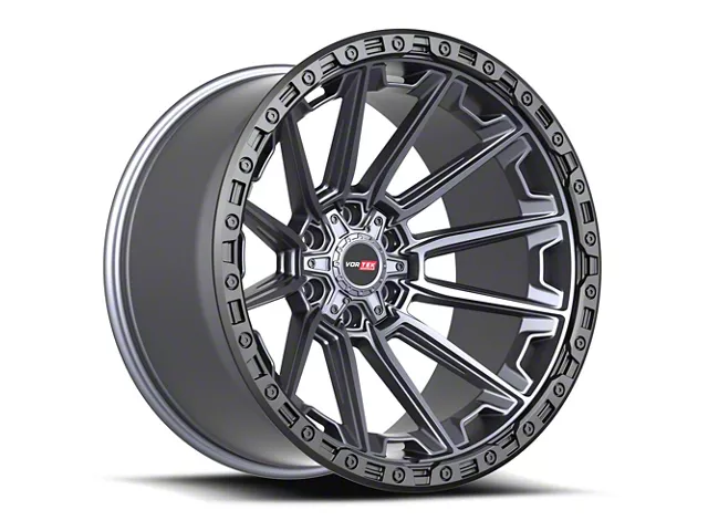 Vortek Off-Road VRT-601 Matte Titanium with Black Bead Ring 6-Lug Wheel; 17x9; 12mm Offset is a visually striking choice, offering a combination of rugged durability and modern styling. Its design complements off-road and sporty vehicles alike, enhancing the overall aesthetic appeal.