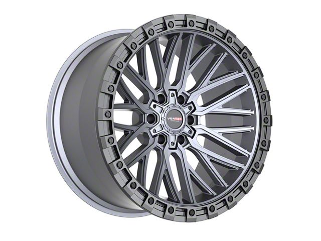 Vortek Off-Road VRT-608 Matte Titanium with Black Bead Ring 6-Lug Wheel; 17x9; 0mm Offset is a visually striking choice, offering a combination of rugged durability and modern styling. Its design complements off-road and sporty vehicles alike, enhancing the overall aesthetic appeal.