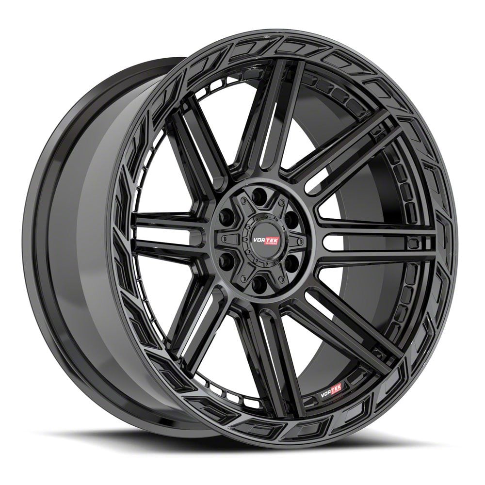 This 24x11 Vortek Off-Road VRP-501 Gloss Black 6-Lug Wheel; 24x11; -24mm Offset is completed in a high-quality gloss black finish that will make everyone take notice. For added looks and strength, the wheel features a durable clear coat that withstands the rigors of daily driving.