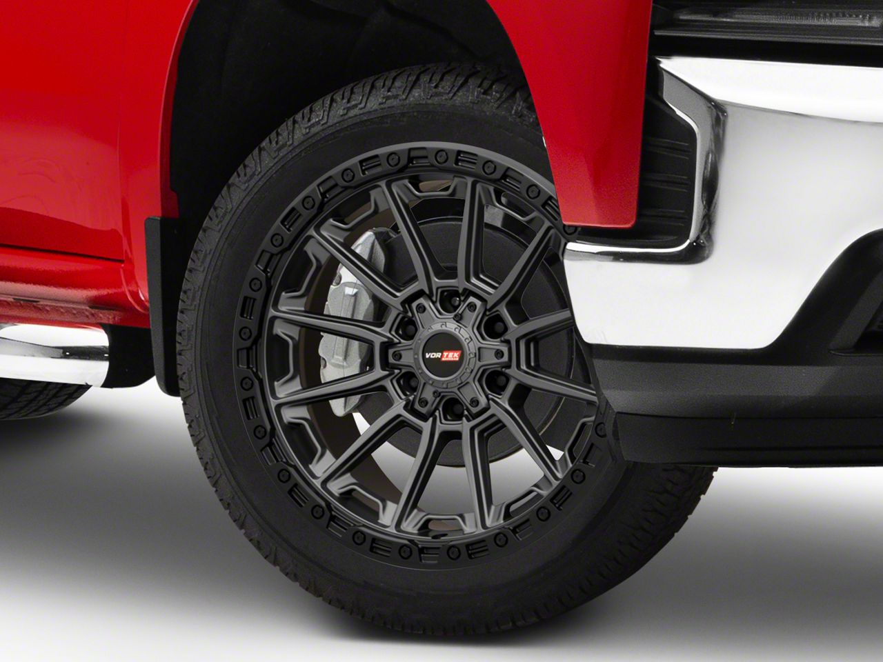 Application This Vortek Off-Road VRT-601 Matte Titanium with Black Bead Ring 6-Lug Wheel; 22x10; -12mm Offset, with a backspace of 5.028 Inch, 127.7mm and a bolt pattern of 6 x 139.7mm (6 x 5.5-Inch), enhances your vehicle's alignment and stability. Designed to fit 2019-2026 Silverado 1500 models, it ensures a perfect fit and improved driving experience. Sold individually.