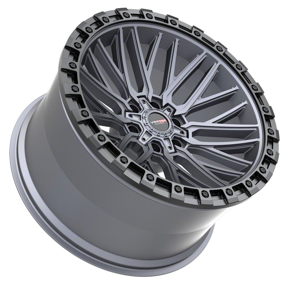 Vortek Off-Road VRT-608 Matte Titanium with Black Bead Ring 6-Lug Wheel; 20x10; -24mm Offset is a visually striking choice, offering a combination of rugged durability and modern styling. Its design complements off-road and sporty vehicles alike, enhancing the overall aesthetic appeal.