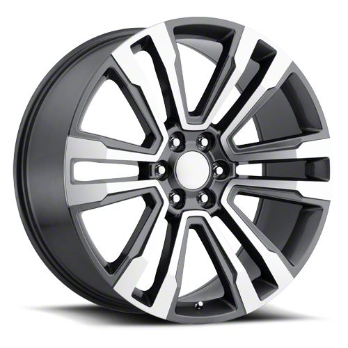 Voxx Replica 2018 Denali Style Gunmetal Machined Wheel; 22x9; 31mm Offset. The Voxx Replica 2018 Denali Style Gunmetal Machined Wheel offers a striking balance of style and refinement. Its unique design accentuates the vehicle's aesthetic, while the premium construction underscores its robust nature. This wheel is a perfect choice for those seeking both elegance and a strong visual statement.
