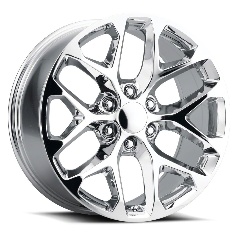 Voxx Replica Snowflake Style Chrome 6-Lug Wheel; 20x9; 27mm Offset. The Voxx Replica Snowflake Style Chrome 6-Lug Wheel offers a striking balance of style and refinement. Its unique design accentuates the vehicle's aesthetic, while the premium construction underscores its robust nature. This wheel is a perfect choice for those seeking both elegance and a strong visual statement.