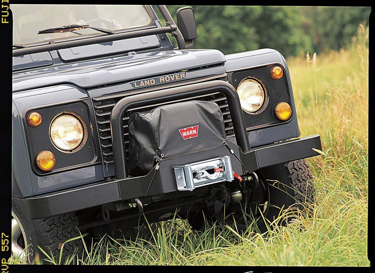 Warn soft winch covers are made of durable nylon backed vinyl, and hold securely in place with elastic bungee cord fasteners.