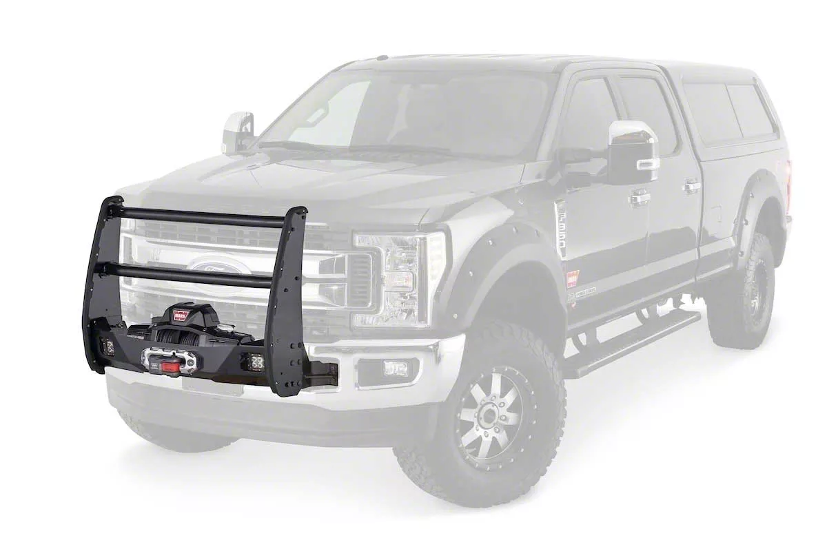 Durable and Functional Front-End Protection. The WARN Trans4mer Gen III Center-Only Grille Guard is designed for 2017-2026 Ford F-250 Super Duty models. Featuring a matte black finish, this grille guard helps protect your vehicle from bumps, hits, and other road damage. With 2-inch tubular crossmembers, welded light mounting tabs, and replaceable rubber trim, it provides both functionality and a sleek, rugged appearance. This grille guard is also winch-compatible with all current WARN large and mid-frame winches, with the proper winch mounting kit.