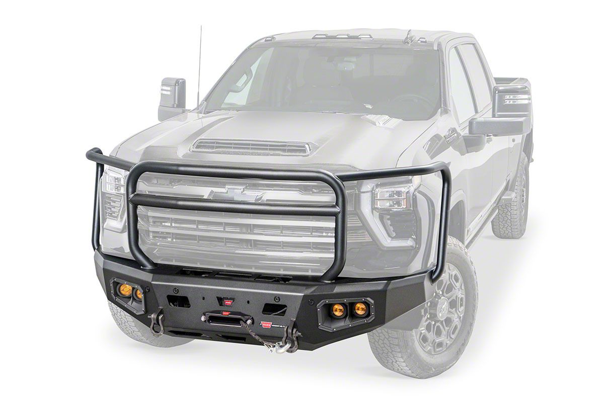 Application. The WARN Ascent HD Front Bumper with Full Grille Guard; Black fits 2024-2026 Silverado 3500 HD models.