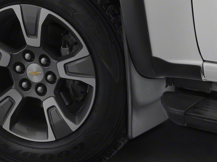 Weathertech No-Drill Mud Flaps; Front; Black (15-22 Colorado w/ Factory Fender Flares, Excluding ZR2)Find parts that fit my vehicle