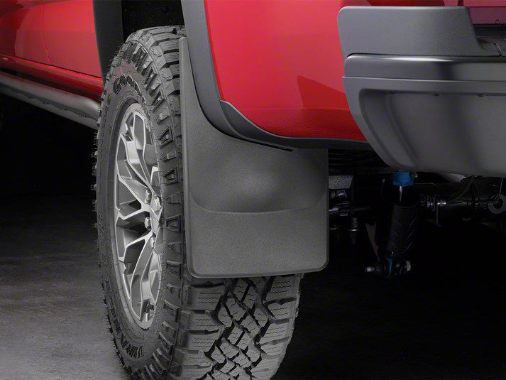 Custom Protection. The No-Drill Mud Flaps provide durable protection for vulnerable areas on your vehicle, such as the fender and rocker panels. Designed to prevent damage from mud, rocks, and road debris, these mud flaps help preserve the exterior finish as you navigate various terrains.