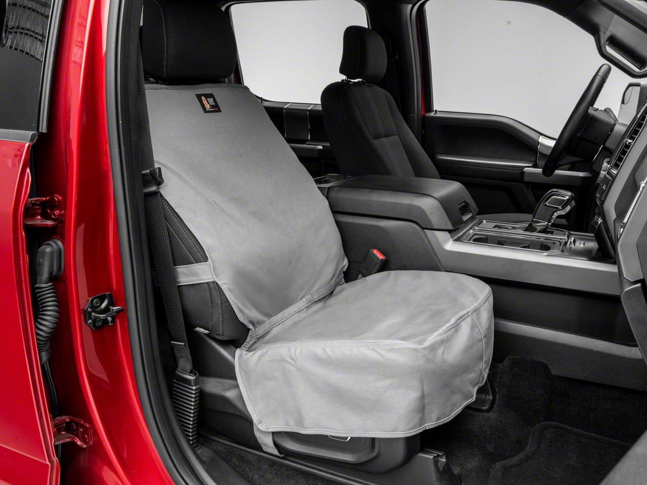 Dynamite Front Seat Protector for your F-150. Keep your front seats free of blemishes that could affect your investment with the Weathertech Front Seat Protector; Gray. In a regal gray finish, this front seat protector is built to last, constructed using premium-grade poly cotton twill fabric for outstanding water repellence and scratch resistance.
