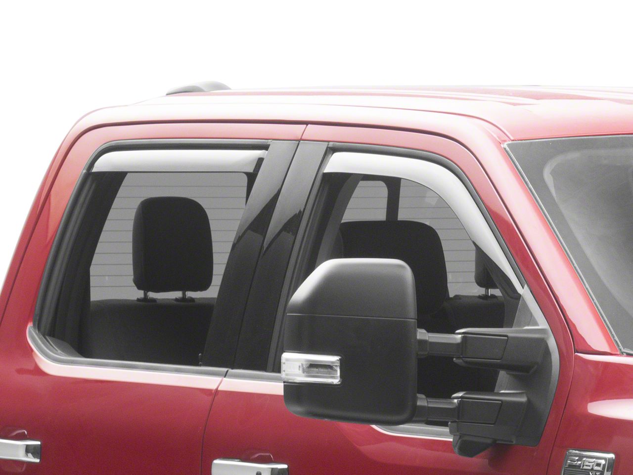 Other Features. These deflectors meet ISO and DOT standards, providing assurance of their quality and safety. They are designed with application- and vehicle-specific properties, ensuring a perfect fit for your Ford F-150 SuperCrew.