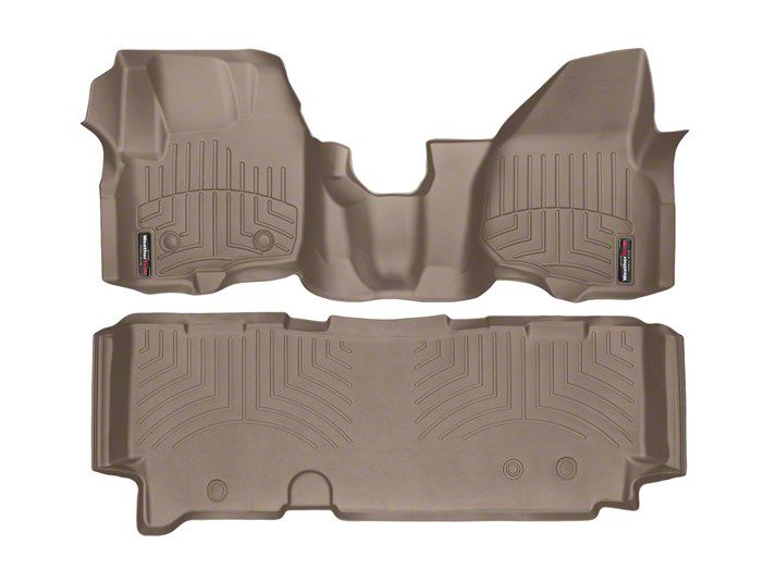 Construction and Appearance. Finished in tan brown, these liners are crafted from patented high-density tri-extruded material that offers a perfect balance of strength, flexibility, and grip. The precision-molded design follows the exact contours of your truck’s floor, creating a seamless fit that enhances both appearance and functionality while keeping dirt and moisture contained.