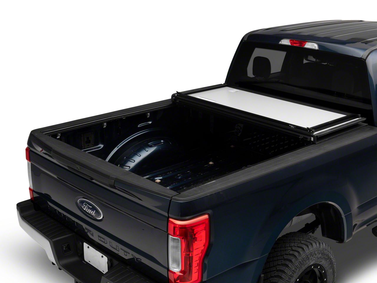 Tough, Versatile Bed Cover. Add a more stable and sturdy bed cover for your cargos by equipping your Ford Super Duty with this Weathertech AlloyCover Hard Tri-Fold Tonneau Cover. Putting on a hard tri-folding cover will not only protect your cargo but will also enhance the appearance of your truck. Moreover, this cover is mounted flush with your truck bed rails to keep a sleek, streamlined look for reinforced aerodynamics.