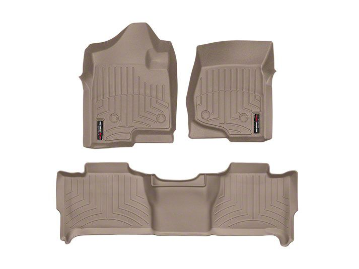 Construction and Features. Featuring a tan brown finish, these floor liners are made from a patented high-density tri-extruded material, ensuring exceptional durability and resistance to wear. The advanced surfacing design channels and traps liquids, dirt, and debris, keeping your vehicle’s interior clean and protected even in tough conditions.