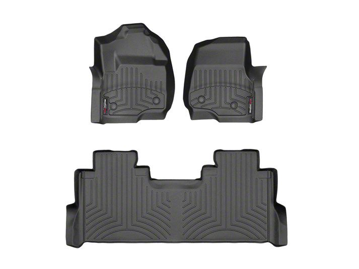 Application. The Weathertech DigitalFit Front and Rear Floor Liners for Vinyl Floors fit 2017-2026 F-350 Super Duty SuperCrew models with Front Bench Seat & Rear Underseat Storage.