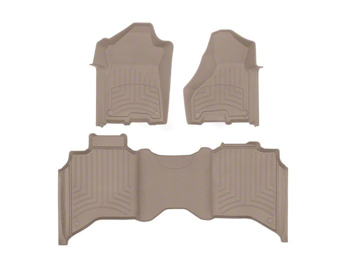 Installation. The Weathertech Floor Liner HP is designed for a precise fit, ensuring easy installation. The set includes 3 pieces that cover the front and rear areas of your RAM 2500 Crew Cab, offering comprehensive coverage. These liners are specifically made for models without the Power Take Off (PTO) feature.