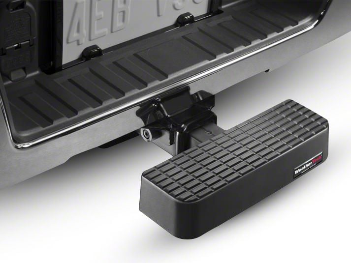 Simple Installation. Weathertech Rear Bump Step is easy to install as it does not require any custom modifications in the process. Simply slide the 2” square part into the receiver, align it to the hole, and insert the Weathertech hitch pin to secure it in place.