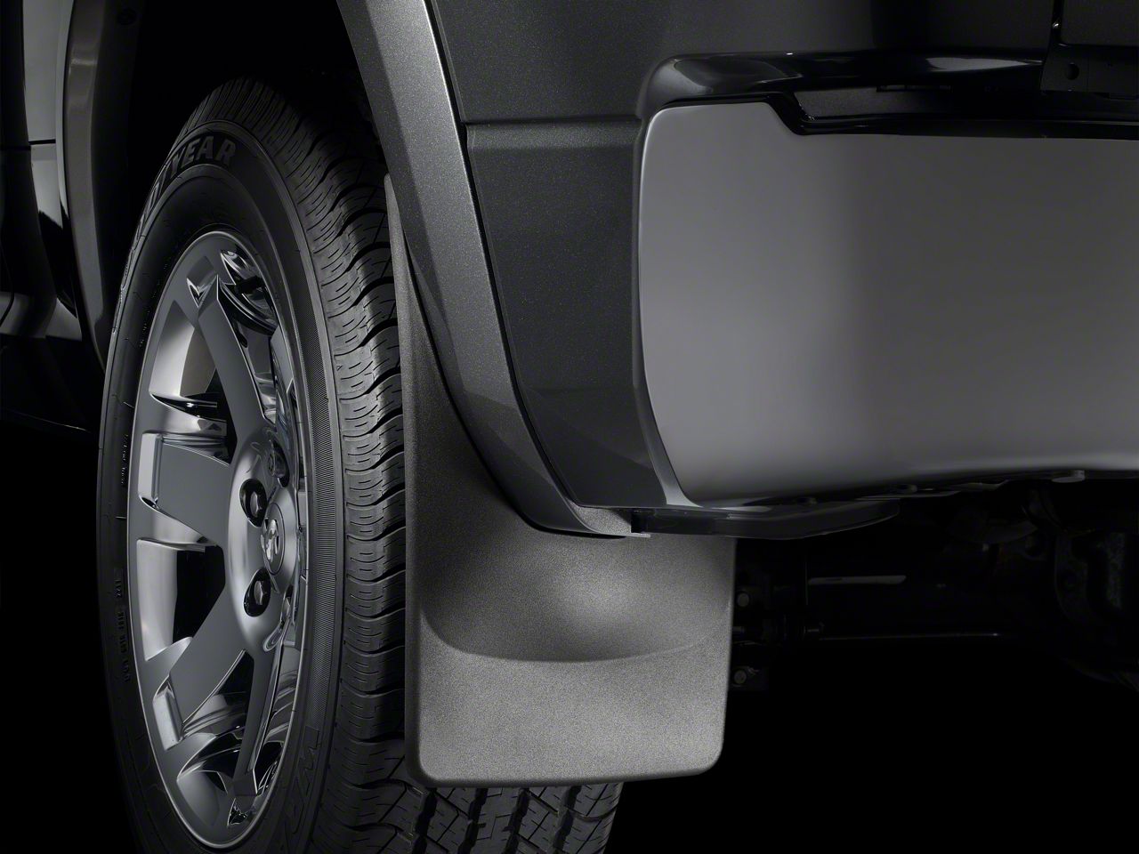 Keep the Mud Out. For one of the best no-drill splash guards in the business, look no further than the high-performance WeatherTech No-Drill Mud Flaps; Rear; Black. In a rugged black finish, these mud flaps are constructed using a proprietary thermoplastic resin which is resistant to fading with a UV protective surface. They are sold as a pair.