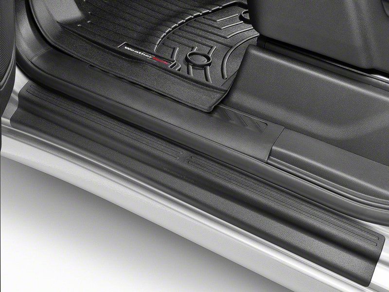 Custom Door Sill Protection. The Weathertech Door SillProtector in black provides dependable protection for your vehicle’s interior door sills against everyday damage such as scratches and scuffs caused by passengers and pets. Designed to effectively shield entry points, this product helps maintain the appearance and longevity of your vehicle’s interior.