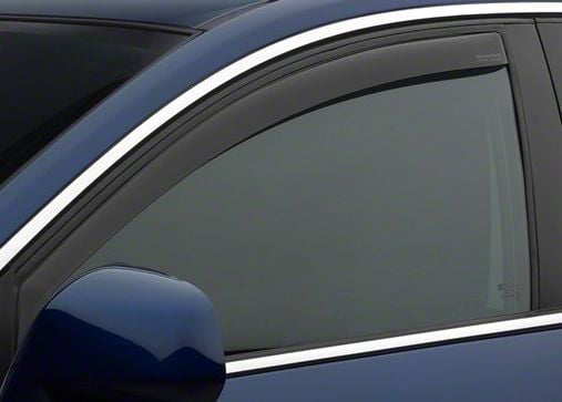 WeatherTech Side Window Deflectors offer you fresh air enjoyment with an original equipment look. They are crafted in Germany from the finest 3mm lightly-tinted acrylic material available. Installation is quick and easy, with no exterior tape needed. WeatherTech Side Window Deflectors are precision-machined to perfectly fit your vehicle. These low profile window deflectors help to reduce wind noise and allow interior heat to escape. Also available in dark tint for most vehicles.