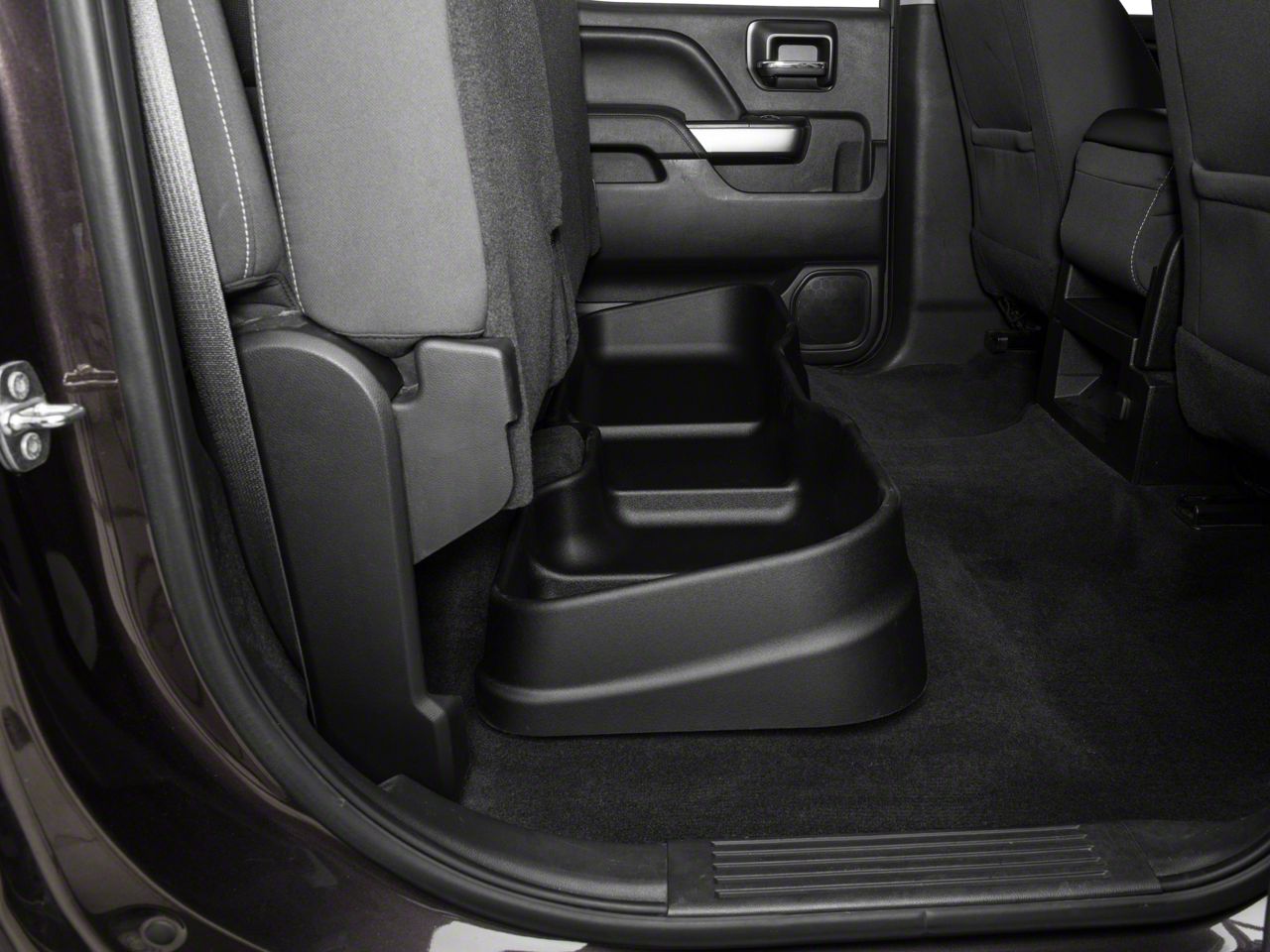 Application. The Weathertech Underseat Storage System is specifically designed to be used on all 2014-2018 GMC Sierra 1500 Crew Cab models.