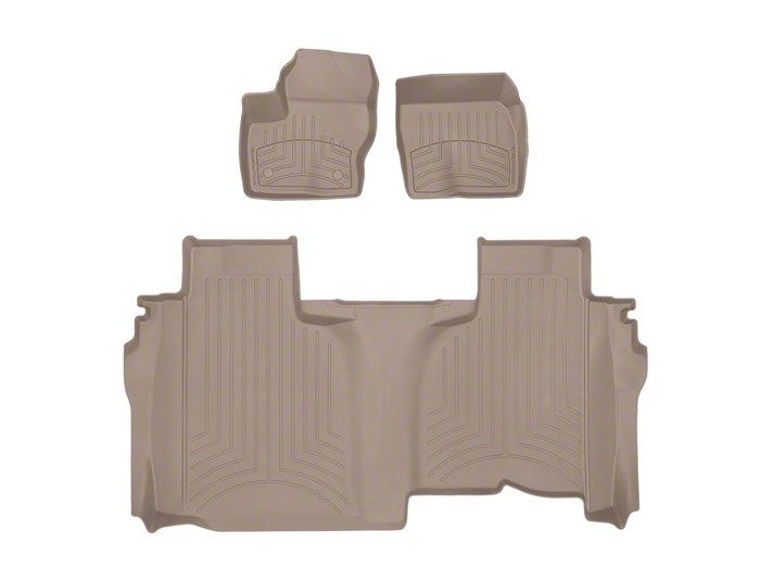 Weathertech Front and Rear Floor Liner HP; Tan (20-26 Sierra 2500 HD Double Cab w/ Front Bench Seats & w/o Rear Underseat Storage)Find parts that fit my vehicle