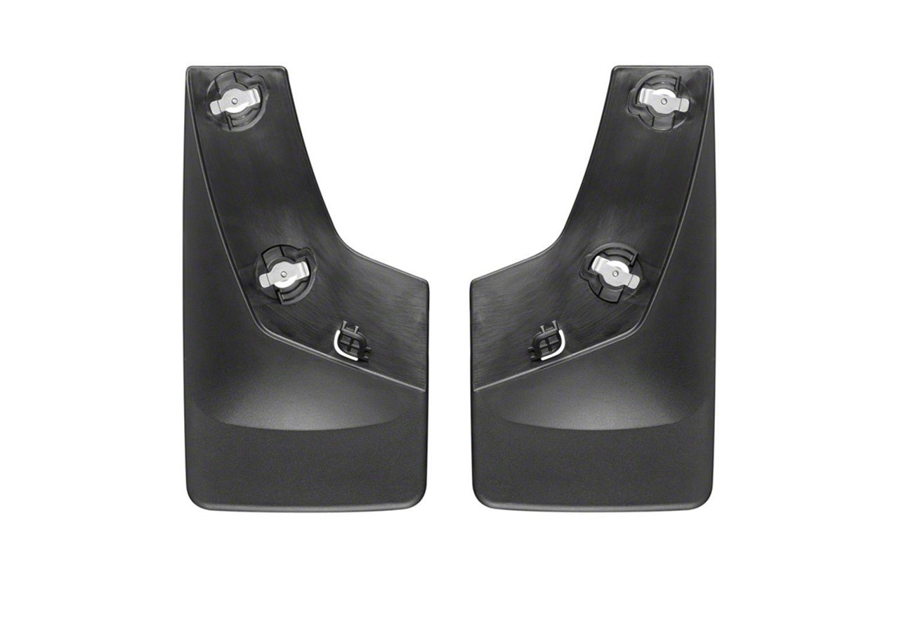 Superior Truck Protection. These black Weathertech No Drill Rear Mudflaps free you from having to clean mud off your Sierra 2500 HD's rear all the time. These molded mudflaps were designed to offer a wide area of protection against mud and other debris.