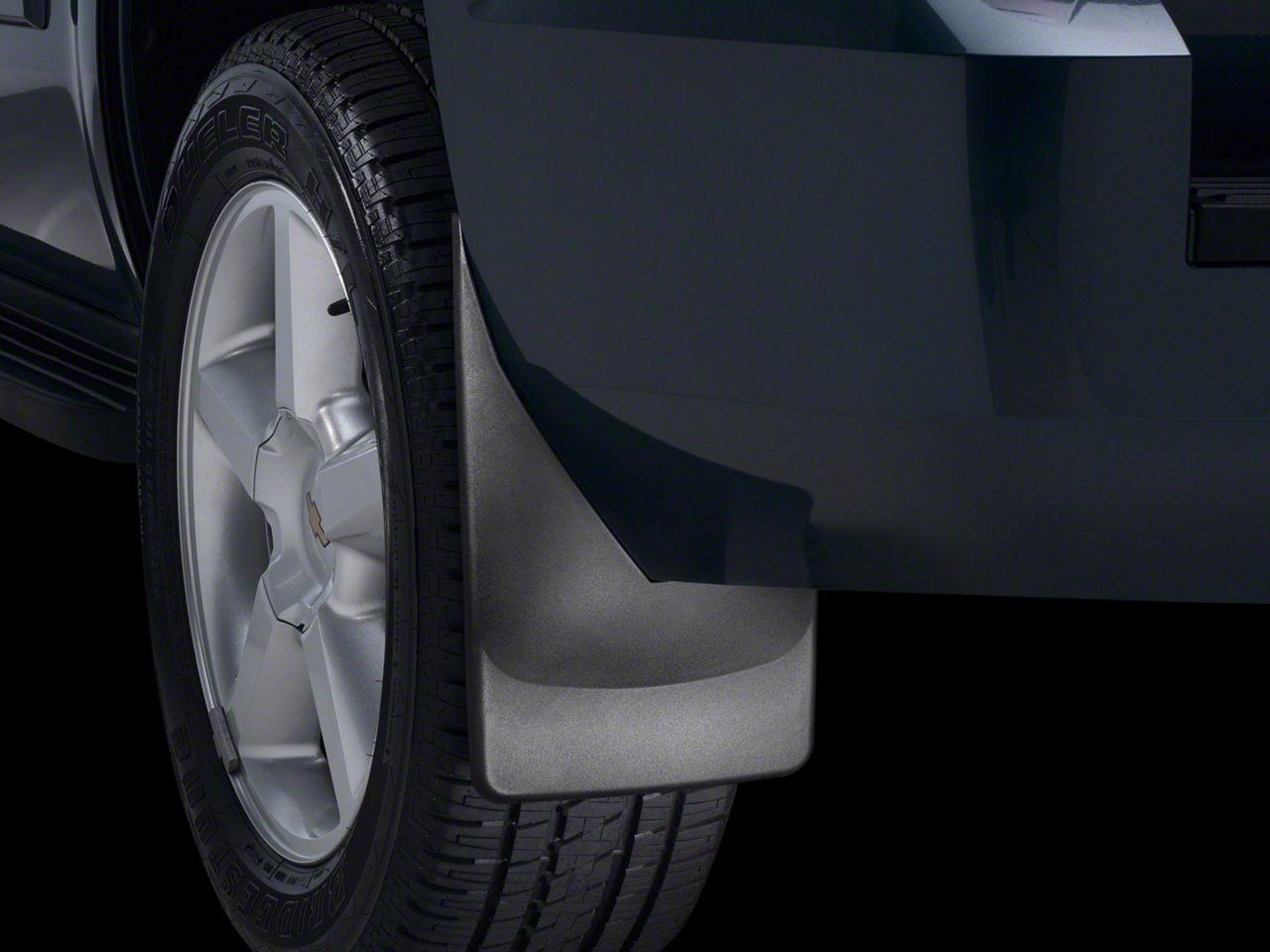 Custom-Fitted Mud Flaps. The Weathertech No-Drill Mud Flaps for the Front (Black) is the perfect solution for protecting your vehicle from mud, rocks, and other damaging debris. Designed for front placement, this pair of mud flaps offer a seamless fit thanks to laser-measured and digitally fitted contours.