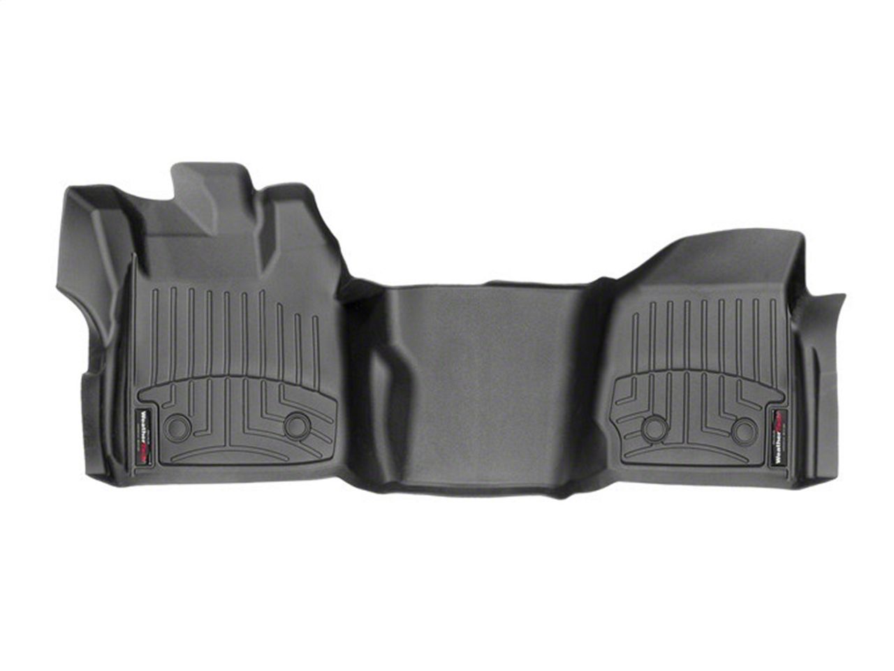 Moisture Protection. Save yourself the trouble of cleaning messes and stains from your F-250 with this Weathertech DigitalFit Front Over the Hump Floor Liner for Vinyl Floors; Black. Manufactured to cover every inch of your car's front interior, it features laser accurate measurements and fine contours for a tight hug along the sides of your seat. It sports deep channels for holding water and blocks stains from penetrating to your floor, making for an easy clean.
