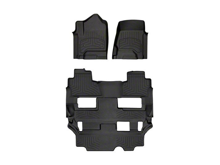 Construction and Features. Featuring a matte black finish, these floor liners are crafted from durable molded plastic. They are laser measured and custom fit to ensure maximum coverage and protection. The liners effectively protect the stock upholstery and carpeting from dirt, spills, and other damage. They also cover the sides of the footwell, providing comprehensive protection. This set includes liners for the front, rear, and third row, ensuring full coverage for your vehicle’s interior.