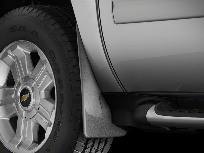 Description. Laser measured for a perfect fit, the WeatherTech Mud Flap literally "mounts-in-minutes" (in most applications) without the need for wheel or tire removal and, most importantly, without the need for drilling into your vehicle’s fragile painted metal surface. Contoured specifically for each make and model and molded from a proprietary thermoplastic resin, these truck or car Mud Flaps offer undeniable vehicle protection.