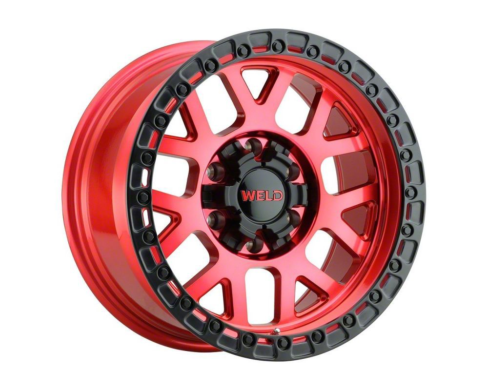 Weld Off-Road Cinch Candy Red 6-Lug Wheel; 17x9; 0mm Offset. The Weld Off-Road Cinch Candy Red 6-Lug Wheel offers a striking balance of style and refinement. Its unique design accentuates the vehicle's aesthetic, while the premium construction underscores its robust nature. This wheel is a perfect choice for those seeking both elegance and a strong visual statement.
