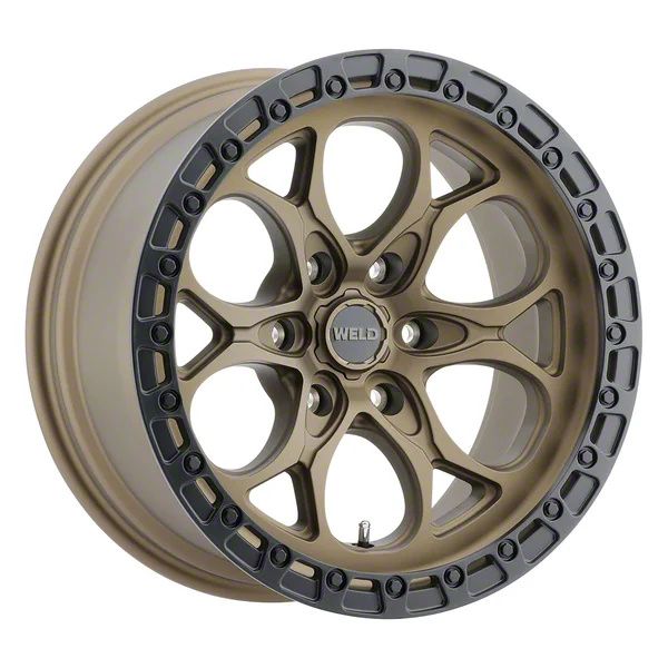 The 17x9 Weld Off-Road Ledge Six Satin Bronze with Satin Black Ring 6-Lug Wheel is completed in a high-quality, radiant bronze finish with sensational accents that will be the envy of everyone. For added looks and protection, there is a durable, clear coat.