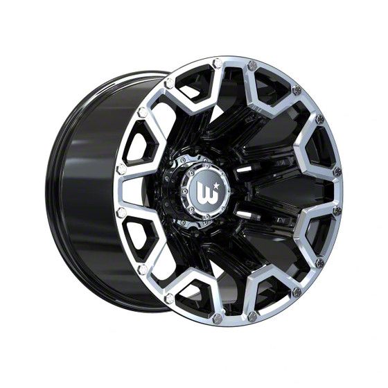 Wesrock Wheels Blaze Gloss Black Machined Silver Decorative Bolts 6-Lug Wheel; 20x10; -12mm Offset exudes sophistication with its finish, offering a sleek and modern appeal to any vehicle it adorns. The design is meticulously crafted to enhance the aesthetic of your vehicle, giving it a distinctive and upscale look. Perfect for those seeking to elevate their vehicle's style, this wheel blends seamlessly with both contemporary and classic vehicle designs, making it a versatile choice for a wide range of vehicles. Its robust construction ensures durability, making it a reliable choice for drivers who value both style and quality.