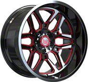 Wesrock Wheels Ranger Gloss Black Milled with Red Tint 6-Lug Wheel; 22x12; -44mm Offset. The Wesrock Wheels Ranger Gloss Black Milled with Red Tint 6-Lug Wheel offers a striking balance of style and refinement. Its unique design accentuates the vehicle's aesthetic, while the premium construction underscores its robust nature. This wheel is a perfect choice for those seeking both elegance and a strong visual statement.