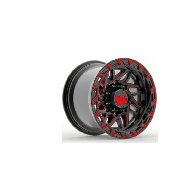 Western Wheels BOULDER Gloss Black with Red Milling Spokes and Spot 5-Lug Wheel; 20x10; -12mm Offset This wheel features an exceptional design that enhances the aesthetic appeal of your vehicle. Its robust build and refined finish make it a premium addition to any compatible truck.