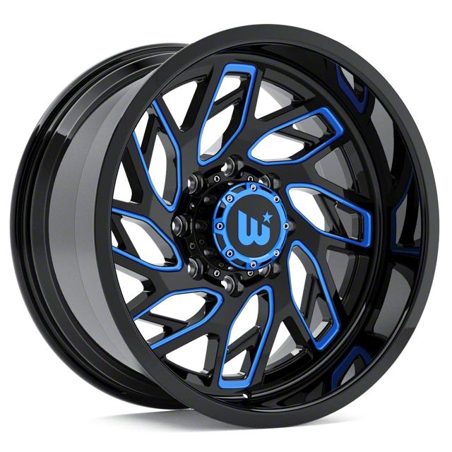 Western Wheels MS83 Gloss Black with Blue Milling 6-Lug Wheel; 20x10; -12mm Offset This wheel features an exceptional design that enhances the aesthetic appeal of your vehicle. Its robust build and refined finish make it a premium addition to any compatible truck.