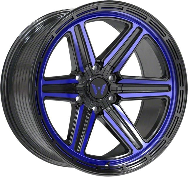 Western Wheels YR13 Gloss Black Blue Milling Spokes 6-Lug Wheel; 20x10; -12mm Offset This wheel features an exceptional design that enhances the aesthetic appeal of your vehicle. Its robust build and refined finish make it a premium addition to any compatible truck.